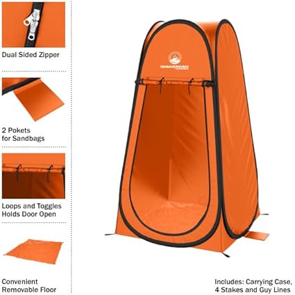 - MULTIPURPOSE PRIVACY TENT – This versatile shelter with a removable bottom can be used as an outdoor shower enclosure, changing room, portable bathroom, or pop up privacy tent for sporting events, conventions, camping, or road trips.