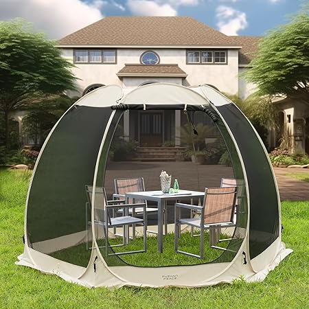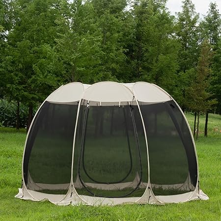 - DUAL-ZIPPER ENTRY + IMMERSIVE PANORAMIC VIEWS: Large zippered door for easy access, with the seamless zipper design to prevent bugs from sneaking in; Screen house with unobstructed 360° visibility, transparent mesh walls offer uninterrupted views of nature;