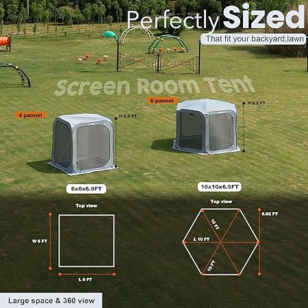 - HOLIDAY TIME – Our portable screen house room is suitable for many outdoor activities such as park camping, family gatherings, friends party, and backyard afternoon naps. We hope this courtyard tent can bring you a comfortable feeling during your holiday leisure time and enjoy a comfortable life