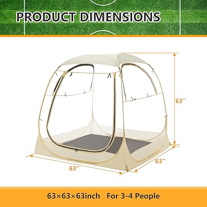 - MULTIPLE SIZES TO CHOOSE: The pop-up sports tent is available in a variety of sizes, suitable for 1-2 people (50*50*62 inches), 2-4 people (63*63*63 inches), and 3-6 people (72*72*65 inches). Whether you are enjoying a quiet time alone or watching the game, there is always a suitable size to meet your outdoor activities.