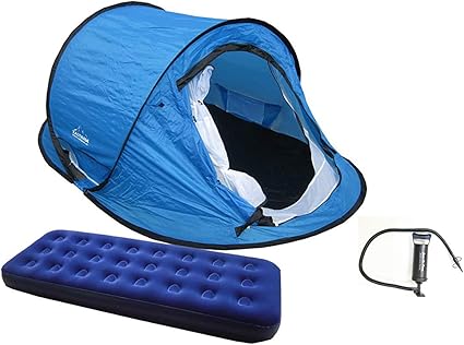 Pop Up Tent with Air Mattress Single and Air Pump Set