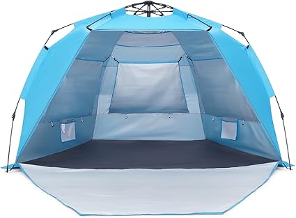 I have fair skin and burn easily. Too much sun and I’m burnt to a crisp. In the summer we go to the lake often or I’m outside doing yard work. This is perfect for both. When I first opened the tent it was super easy to put up. I was out in the front yard manually dethatching by hand. The morning sun was beating down on my. I popped this open and OMG what a difference this makes. It kept me cool while working and protection from the beating sun. My only issue with this was getting is closed. It took a lot of force to get it closed and struggled with it. Other than that I love this product.