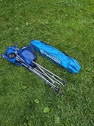 This is a great little shade tent that can be used at the beach, a kid’s soccer game, or really anywhere else you need a little shade. If you’re looking to fit lawn chairs, you should be able to get 2-3 in here, depending on how large yours are. I like that the window coverings are held up with a hook in each corner, which is much quieter than a zipper on a camping tent would be.