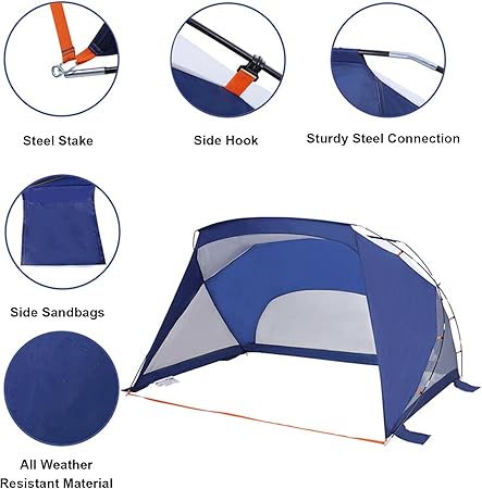 - EASY SET UP & TEAR DOWN: This beach shelter is easy to set up. You can done while baby wearing. Definitely recommend if you’ve never set up a beach canopy before and want a safe space for your children at the beach