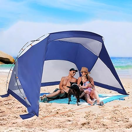 - GREAT VENTILATION DESIGN: 4-sided ventilation with 3 big mesh windows provides excellent ventilation and keeps you cool. This beach canopy also has wide open front allows for easy access and good sight
