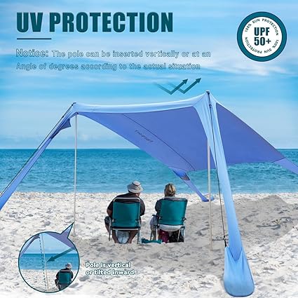 - 【Beach Shade Stable Structure】In order to be more wind resistant and less likely to break, we have thickened the design of the 2 aluminum poles. The beach shade canopy can be used not only on the beach, but also on the dense grass, and even in the campground. During use, try to fill the sandbags with sand or rocks so that the tent will not be blown down even if the wind is strong! Warm tip: Not to be used under a violent storm