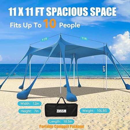 - Superior UV Protection: Equipped with a UV-protective canopy, our beach shelter blocks harmful rays, keeping you cool and safe under the sun. Ideal for beachgoers looking for a reliable sunshade for beach days