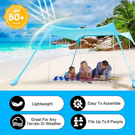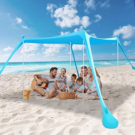 - PERFECT CHOICE: The beach tent canopy area is up to 10×10 feet, providing spacious shade for 4-5 people, you can relax at the beach, camping, backyard barbecue, picnic in the park, fishing by the river, sports, music festivals, watching the waves, football matches, or any other outdoor activities. Can be installed almost anywhere for all outdoor activities for family and friends