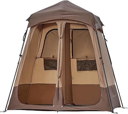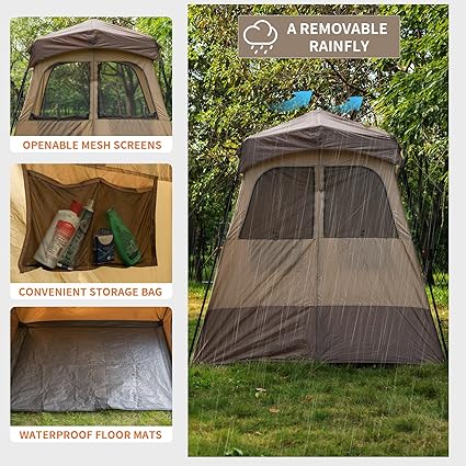 - 【EASY SET】Pop Up In SecondsAutomatically pops up in seconds, no assembly required. .Please fix the shower tent with ropes and nails while using it outdoors.