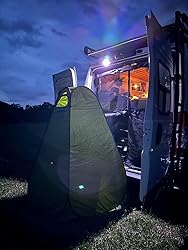 I purchased 2 of these (blue & green) to take camping to use as a private shower & bathroom. It did the job. The only downfall to this brand name was the zipper. Trying to open & close this was a pain. It was the hardest zipper pull ever. I had to yell for my husband to help me pull the zipper from the outside while I did it from the inside. It was such inconvenient. This was for both. The green one had cuts here and there. Was very disappointed. I couldn’t return it for it arrived a day before our camping trip & I needed it. Will not be purchasing from this vendor again.