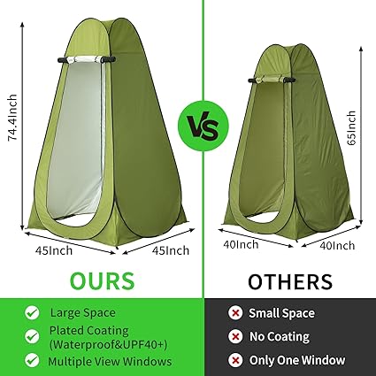 - EASY TO USE: The privacy tent opens in just seconds, which is quite time-saving. With the height of 74.4 inches, it is suitable for adults to use indoors, outdoors