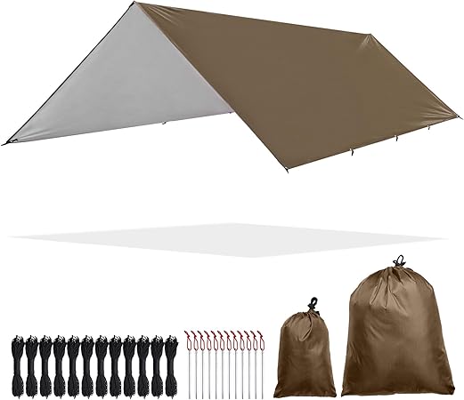 Portable Camping Tent Tarp for 2-3 People Water Resistant Brown