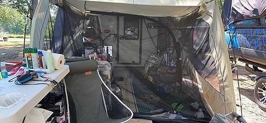 What a great idea. We decided to car camp and wife wanted to sleep in the car. This tent fits right on to the back of the car in seconds with the stretch and the two poles hold up the outer part well. This gave us some protected “living space” outside the back where we could put our stuff and sit and be protected from flying bugs. Very happy with this.