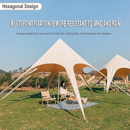 - [SUNSCREEN & UV PROTECTION ] – Hexagonal design camping tarp made of premium 600D oxford fabric, with excellent sunscreen and heat insulation effect, and it is effectively for blocking ultraviolet ray and it is not easy to be sunburned. Sun protection index: UV50+