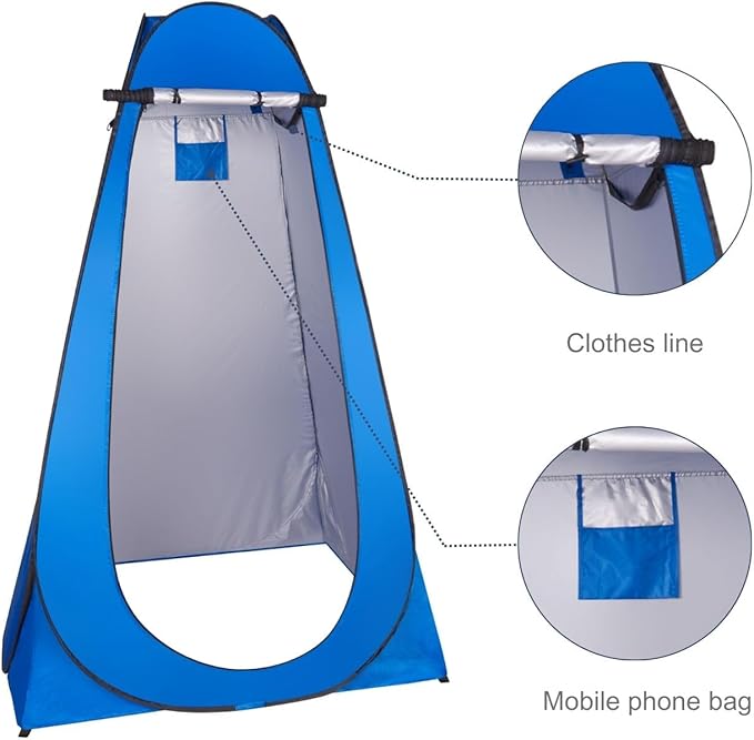 - Multi-Use: Shower tent offers a private space for using the toilet and enjoying a quick shower when you go camping outside. It also provides a changing room for models to change clothes when you shoot outdoors, for your kid’s dancing competition, or for clothes vending stands