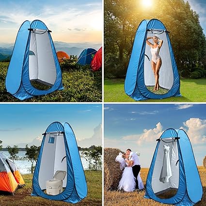 - PORTABLE & POP UP DESIGN – Camping toilet tent is 47.2″ L x 47.2″ W x 74.7″ H, providing a spacious interior shelter that comfortably fits 2 people. Weighing just 5.5 lbs, the dress tent can be folded into a compact size of 22″ L x 22″W x 1.4″ H. Ultra-lightweight construction stand up changing tent allows for easy transportation with an included carrying bag. Privacy tent for portable toilet easily pops up and folds down in seconds without any hassles of tedious installation.