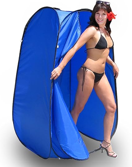 It cracks me up that they put a woman in a bikini in high heels coming out of this thing. I’ve used mine all over the place, and not once has someone so bizarrely dressed come popping out of the changing stations. I mean seriously… she’s not at the beach or the pool in those shoes. I’m not sure what the vendor is trying to imply here, but I’m guessing she doesn’t need a pop up changing tent given whatever activity she has planned.