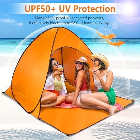 - 【Excellent UV Protection】: Integrating with high-grade silver coated polyester oxford cloth, the beach shelter tent can effectively block the sun’s UV rays, making all-day protection for you and your family. And the sturdy steel wire frames make our tent opaque, sun-proof, water-resistant, tear-resistant and durable. Which is suitable for all your outdoor activities.