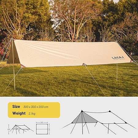 - 【High Quality Material】 LACAL camping tarp is made of extra heavy duty 210D ripstop oxford cloth and PU2000 silver coated layer to keep you dry or away from harmful UV rays.