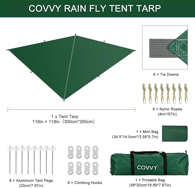 - 【Multi-Function】COVVY camping tent tarp can be used as hammock rain fly, shade tarp for beach/park, tent footprint, survival shelter, picnic mat, grassland blanket etc for hunting, fishing, backpacking, traveling, hiking & other outdoors adventure