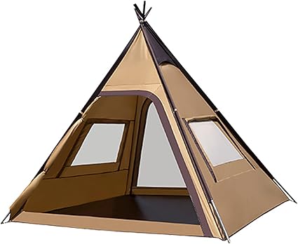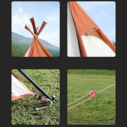 - 【Double door design】: Double doors for easy access. Both canvas flap doors are equipped with mesh screens for more ventilation. There are ventilation holes on the top of the tent to circulate air and maintain ventilation.