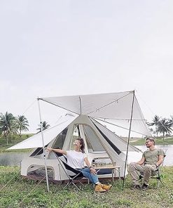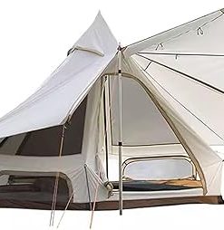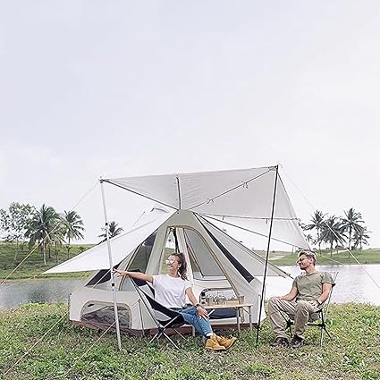 - Quick & Easy Setup The pyramid-style tent features a pole design that allows for a fast 5-minute setup, perfect for spontaneo outdoor adventures.Waterproof & UV Protection Made from durable Oxford cloth with a 3000MM waterproof rating, this tent also provides UV protection, keeping you dry and from the sun.Spacio for 4-6 People: With genero 320×320×230 cm dimensions, this tent comfortably fits