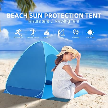 - 【One Click Setup】This is an automatic pop up shade tent with no assembly required. This pop up beach tent can accommodate 2-3 people.