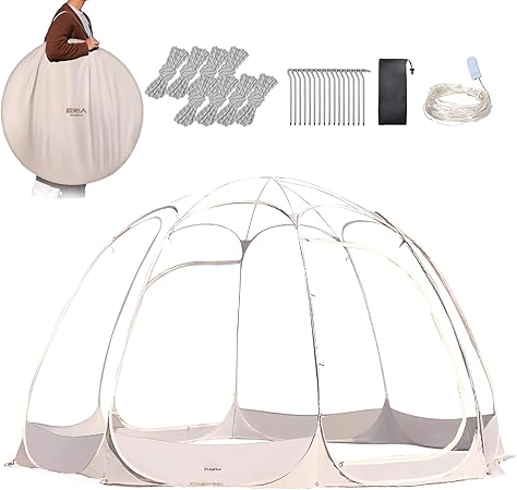 - 【Your Own Personal Bubble】Create your own private sanctuary with the SAIYERUS Pop Up Bubble Tent. This automatic, no-assembly-needed igloo tent is perfect for establishing boundaries between you and others, whether in public or in the privacy of your own space. Simply pop it up, secure it, and enjoy your personal bubble to the fullest. It can accommodate 8-10 people, suitable for small or medium-sized gatherings or family dinners.