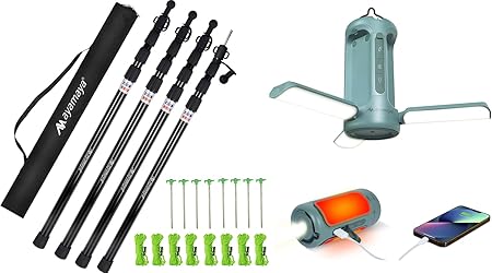 Illuminate your adventures with our Foldable Lantern & Trap Poles! Rechargeable, 5 modes, and 4 telescoping tent poles. Get yours and light up the night!