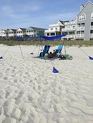 - NOW IMPROVED DESIGN TO SUSTAIN EVEN STRONGER WIND CONDITIONS ➤ A Set of 4 New Custom designed Pole Anchor Screws are now included in our Sunshade for Beach! These provide a more rigid structure to the canopy and make it easier to install (screw the pole anchors into the ground, pop the poles in). The Shade is able to sustain stronger winds. The Pole Anchor Screws also add about 4” (4 inches) of height to the Shade. The BEST Family Beach Sunshade has become even BETTER.