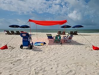 I was looking for a sand free beach blanket when I came across this (goes with a sand free beach blanket). Lightweight and easy to carry. Takes 5 minutes to set up.