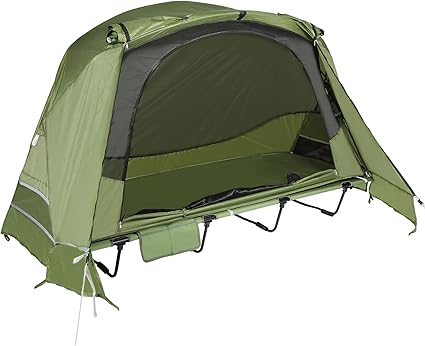 - Convenient Details: Coming from see-through windows on both sides of outer flysheet, which is convenient to keep the air circulate. The design of double-sided zipper is convenient to open or close the tent door inside and outside. Camping cot and tent have extra storage pockets for easy storage.
