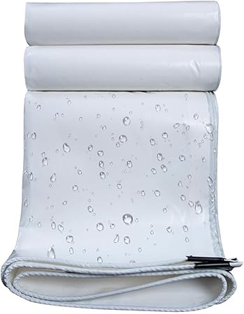 - STRONG EDGE- The edge of the rain tarpaulin is made of thickened nylon and one-piece wrapped rope. After high temperature heat bonding, the wrapped edge is seamlessly fitted, high adhesion and more tensile resistance. There is an enlarged galvanized eyelet every 100cm on the edge of the white rain tarpaulin, which makes the tarpaulin fixing and installation faster and easier.