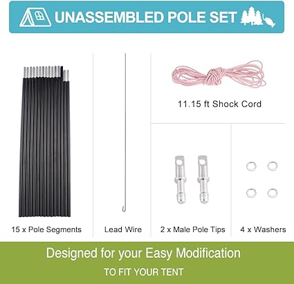 - TRUSTWORTHY QUALITY – We adopt high quality 7001 series T6 Heated aluminum alloy and durable elastic cord to make sure this tent poles replacement can take the bends better than many cheaper poles that would snap easily, and have a longer lifespan. Every pole segments are carefully handled for smooth connection between pole sections for easy and quick set-up/takedown.