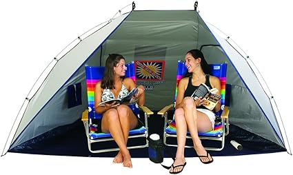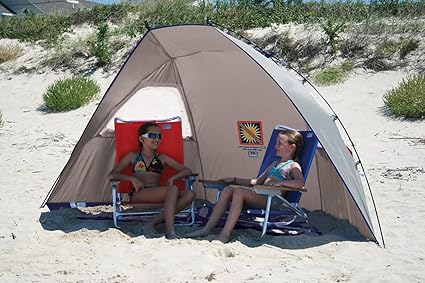 - With its compact folding design, easily store and carry your beach shelter anywhere – including carry-on luggage