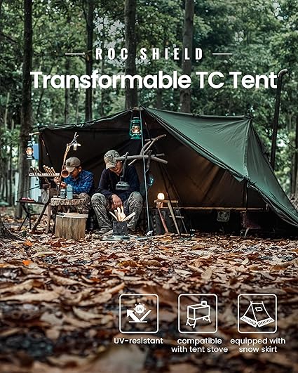 - ★ 𝙃𝙤𝙩 𝙏𝙚𝙣𝙩 𝙬𝙞𝙩𝙝 𝙎𝙩𝙤𝙫𝙚 𝙅𝙖𝙘𝙠: Comes with a waterproof stove jack, so you can use it with a burning wood stove. Heat retaining snow skirt design to keep campers warm during winter camping; snow skirt can be folded out of the way when not needed