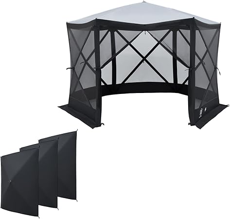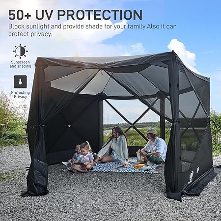 - SPACIOUS AND VENTILATED: 11.5 x 11.5 ft netting screen room is big enough for 8 adults and camping equipment; 6 mesh panels provide ventilation and protection from the sun / elements