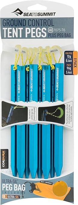 Secure your campsite with Sea to Summit Ground Control Tent Pegs. Durable and reliable, grab your 8-pack today and enjoy a worry-free adventure!