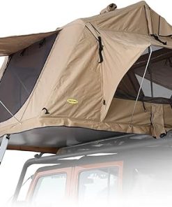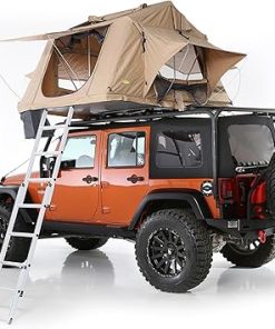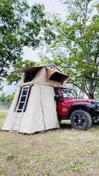- 600D heavy-duty waterproof top and rain fly; sunroof; side windows with mosquito netting; anodized aluminum tent frame poles; telescopic ladder; interior LED strips and many more features