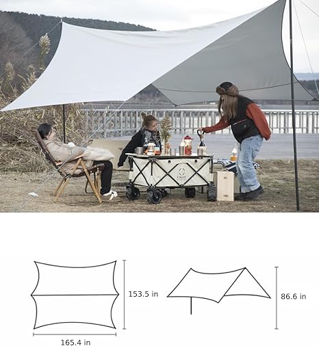 - UV Protection: The outer layer of the camping tarp is coated with silver glue coating, so it can block ultraviolet rays more effectively and has excellent shading and heat insulation properties. Stay comfortable and cool even in midsummer.
