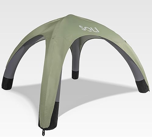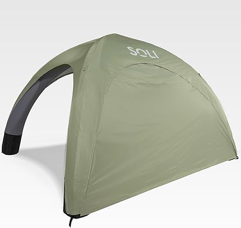 SOLI: Air Canopy 12′ – Sage Green – Outdoor & Beach Self-Inflating Sun Tent, Shade Wall, UPF 50+, Pump-Stakes-Ropes, Lightweight & Portable, Backpack