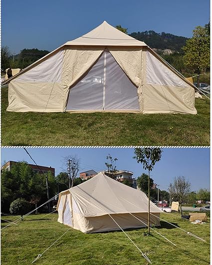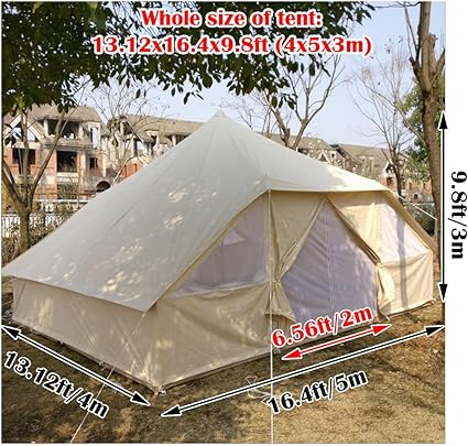 - 【Large/Comfortable Space】13.12×16.4ftx9.8ft(4x5x3m) large tent can accommodate for 8-10 people, fit for large group of families and friends to make glamping. In the tent, you can put beds, sleep bags, table and other things you needed. Double doors and four windows to ensure better ventilation and clear views.