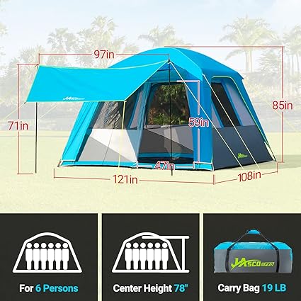 Spacious 6 Person Camping Tents with Porch and Rainfly Waterproof