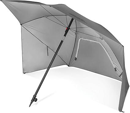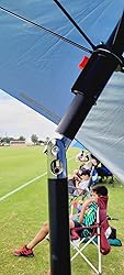 With my kids’ sport seasons in full swing I decided to purchase this to offer relief from the relentless southwestern sun. The umbrella does a great job at that, offering a great space for 2 people to cool off out of the sun. The problem is it does not stand up to even minor wind gusts. My second time using this umbrella I had it setup with its back to the breeze when a minor back draft kicked up and immediately turned the umbrella inside out, bending poles and locking the umbrella in a half open position. After carefully trying to bend the poles back I was able to salvage the purchase, but not for long. On my 3rd use a similar back draft hit the umbrella and it completely fell apart. I’m sitting on a sideline watching my kid play and all of a sudden I’m tangled in umbrella fabric and loose metal support poles. All of the umbrella spines are held onto the umbrella pole by a wire no thicker than a paper clip, and when it breaks your umbrella is done for. I took the time to layout and install a thicker gauge wire, but it was no easy task. I would avoid this product if you don’t want similar problems.