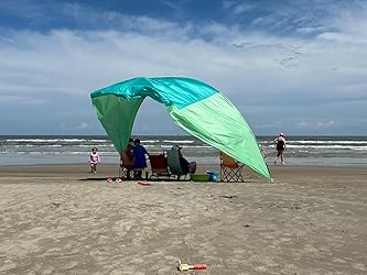 This Sunsail shade is really a novel idea that works!! We had 5 adults with beach paraphernalia comfortably sitting under its shade. The wind was strong enough that a conventional beach umbrella would have blown away. This shade was perfect!!! Set up was a “breeze”. It is really cool looking and easy to move if the wind changes direction. It is not effective when there is no wind or when the wind is blowing inconsistently. This product makes beach going fun and I’ve had several people tell me they want one too!!