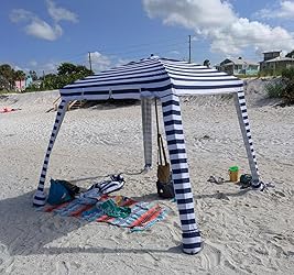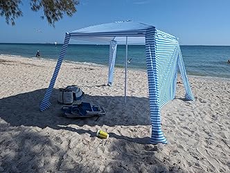 Tangkula 6.7’x6.8′ Foldable Beach Cabana, Easy Set-up Portable Beach Tent with Carry Bag, Detachable Side Wall, 4 Sandbags, Wind Vent, Sun-Protection Outdoor Beach Umbrella Shelter for Family