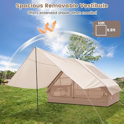 - Extended Interior for Family: The inflatable camping measures 9.8 x 6.8 x 6.6 ft (L x W x H), making it capacious enough to comfortably accommodate 4-6 people or fit 2 air mattresses. Furthermore, a large detachable porch creates added space for picnics, allowing you to chat and play under its protection.