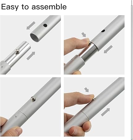 - 【𝐄𝐚𝐬𝐲 𝐒𝐞𝐭 𝐔𝐩】The collapsible pole is easy to assemble by button rebound.Just push the button to aim other pole bottom hole to connect.