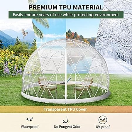 - 【SUPERIOR PROTECTIVE MATERIAL】The bubble tent is built from transparent TPU material to provide a clear, 360°view. The thickened TPU screen features excellent sun protection, warmth retention, and wind-proof, creating a warm and relaxing outdoor space for you and your family.