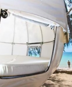 - Frame: The frame of the treehouse dome is made with galvanized steel pipes which are curved in shape and are joined together to create the oval shape of the dome. The steel is dipped in a white plastic coating to have anti-corrosion propertieshe dome